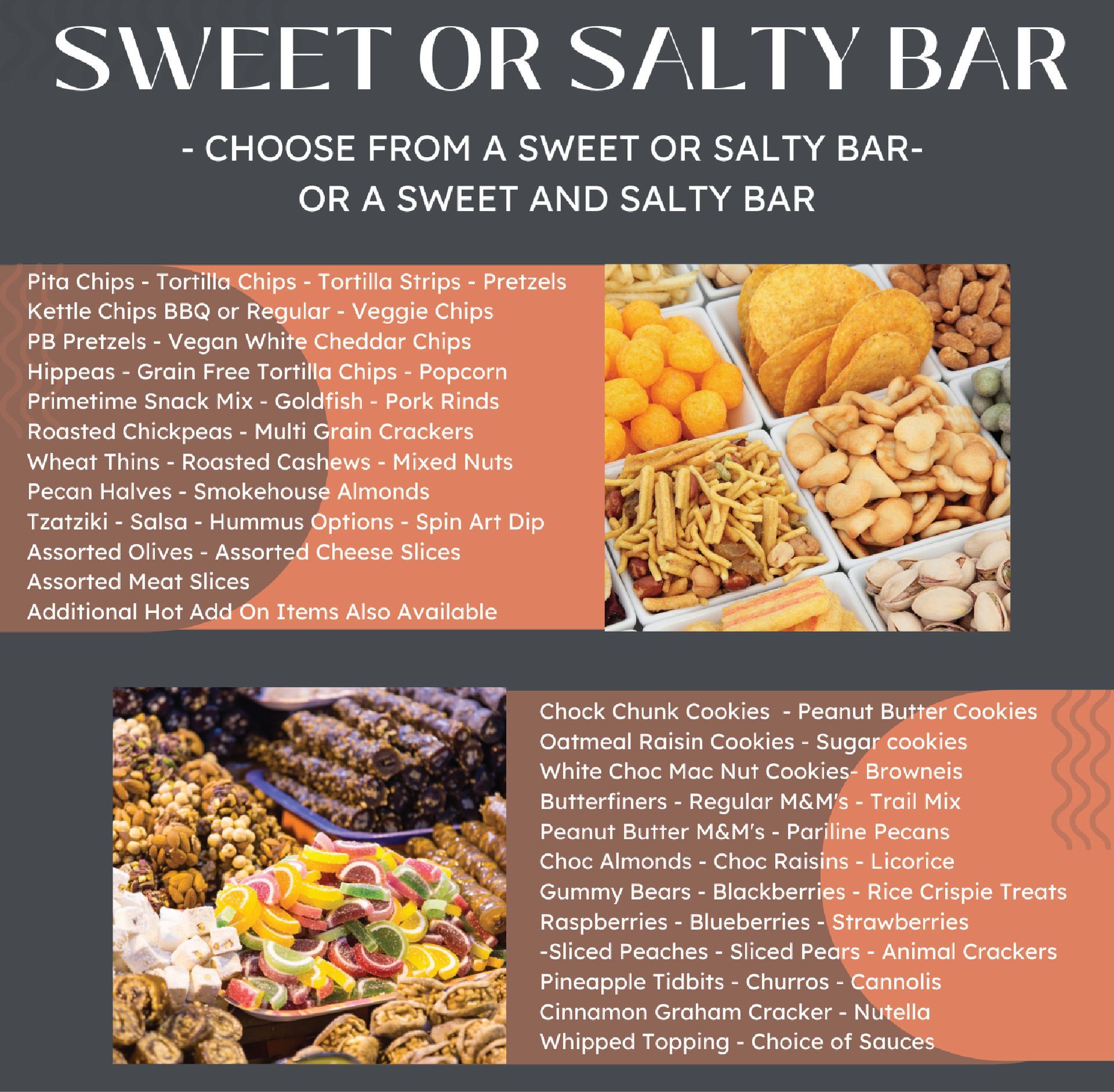 Indulge yourself, and your event attendees with delicious snacks brought directly to you!